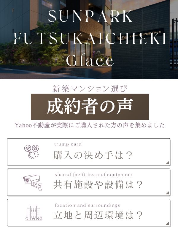 ※成約者の声は個人の主観・意見であるため、誤った内容・大げさな表現が含まれる可能性があります。また、投稿時点の情報であるため、現況とは異なる場合があります。※こちらの成約者の声は、Yahoo!不動産にて取得した情報となります。60代男性/ファミリー2026-01-14予算/価格希望の予算の枠内に収まった。浴槽の洗浄設備など満足できたし、収納も想像以上であった。最寄り駅も、JR,西鉄ともに近い。買い物/交通の便イオン筑紫野まですぐに行ける。博多、天神ともにアクセスがよい。JR,西鉄ともに最寄り駅まで8分以内と近い。その他平置き駐車場が100%以上と大変満足している。ももともと二日市に住んでいたので、近隣のことがよくわかっているので、今後の生活も楽しめる。20代以下男性/夫婦・カップル2025-11-22予算/価格世帯の収入に応じてある程度余裕のある範囲でできる金額だった。ローンを考えてもなんとか支払いができそうな範囲内であった。間取り他の物件と比較しても収納スペースが確保できる点が良かった。現在居住している物件は収納がほぼないので、その点がプラスに感じた。買い物/交通の便職場に通うにあたって、西鉄とJRのダブルアクセスで徒歩10分圏内な店が良かった。近くにスーパーがあるのも良かった。30代女性/ファミリー2025-11-02予算/価格無理なく返済できる金額で探したローン年数もできる限り短く、現在の家賃と変わらずボーナス払いも無理のない範囲で探した間取り子育てをする上で広い家に引っ越したかった最初は3LDKで検討していたが4LDKのモデルルームを見学し子供が2.3人ほしいこともあり4LDKで広い間取りに決めた買い物/交通の便夫婦の職場が逆方向かつJRと西鉄だったため、ダブルアクセスかつ快速特急が停車する駅がよかったまた駅まで徒歩時間もできるだけ近くを探した30代男性/夫婦・カップル2025-08-09予算/価格自分が住みたい立地及び物件の広さなどの条件を満たす物件のうち、できるだけ低予算で購入できる物件がないか検討した。間取り3LDKかつ70平米以上の物件であり、収納スペースが多くリビングが横長の間取りの物件という条件で検討した。買い物/交通の便JRと西鉄電車がダブルアクセス可能な立地であるとの条件を満たす物件のうち、スーパー等が近くにある物件を探した。30代男性/夫婦・カップル2025-08-03予算/価格3000万円台であることから希望であった35年ローン、ボーナス返済なしでで無理なく返済が出来そうだった間取り3LDKを希望していたためぴったりだった。間取りも不満なく、収納もついていてよかった。色々とオプションで選べるのもよかった買い物/交通の便職場まで行くのに、電車を使うから駅から近いところを探していた。徒歩10分以内だったため夏でもキツくないと思った30代男性/ファミリー2025-07-28予算/価格生活費、教育費、娯楽費などを十分に使っても、なお住宅ローンの支払いに無理がない金額であることを重視した。買い物/交通の便駅徒歩が最重要。その上で、できれば地下鉄や西鉄の駅が良く、JR九州の駅であれば快速が止まること等、駅自体の属性が次点。生活環境/治安その学区の学校の雰囲気や、街自体の治安を重視した。また医療機関や飲食店なども近くにあればより望ましい。40代女性/夫婦・カップル2025-07-19デザイン/外観内装を選べる時期で自分の好みに合わせて家を作り上げてゆく事ができるのが魅力だった。キッチンカウンターの高さも家族の身長に合わせて高く設定でき満足。買い物/交通の便西鉄電車とJRのダブルアクセスで、天神にも博多駅にも行きやすく便利。買い物はスーパーも近く、車で大型店舗(イオン、ゆめタウン)にも行きやすい。その他実家に近くアクセスしやすいのと、平置き駐車場で順番待ちせずともすぐに車の出し入れが出来ること。世帯数が52戸とちょうど良いサイズのマンション。20代以下男性/ファミリー2025-07-13予算/価格筑紫野市内であれば3LDK4000万円未満、4LDK4500万円未満で探していた。春日市、大野城市、福岡市南区、福岡市博多区であればさらに追加で500万円以内。間取り70平米以上の3LDK,4LDKで探していた。今回の物件についてはLDKがワイドで使いやすそうだったことも高評価。買い物/交通の便JRの快速停車駅徒歩10分以内を一つの目安にしていた。さらに可能であれば西鉄駅も徒歩10分以内であればなおよしと考えていた。20代以下男性/夫婦・カップル2025-06-22間取り子供が産まれるため、最低でも3LDK以上は欲しいと思っていた中で、成約した部屋は3LDKであり、リビングも16帖とけっこう広かったのが良い点であった。共有施設/設備ペットを飼う人にとっては非常に助かるペット足洗場や、エントランスにベビーシート付きの小荷物カートがあるのは大変魅力的である。買い物/交通の便JRだけでなく西鉄の駅も近くにあるダブルアクセスが魅力的であり、イオンモールやスーパーも徒歩圏内で通えるのは有り難い。30代男性/夫婦・カップル2025-06-15予算/価格新築マンションでかつ春日駅もしく